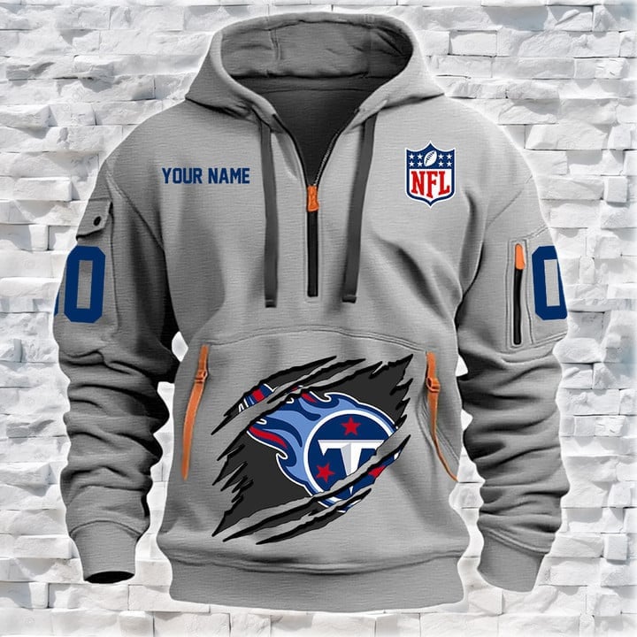 Tennessee Titans Neuer personalisierter Kapuzenpullover mit Viertelreißverschluss AZBTQZH000063